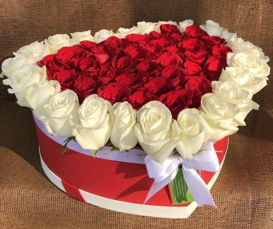 Голландские розы в коробке в форме сердца. Mix голландских роз Freedom и роз Mondial. Если Вы хотите покорить женское сердце или просто подарить незабываемые эмоции дорогому человеку — закажите доставку цветов в Zakazbuketovkz